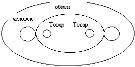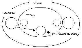 На определенной стадии при развитии системы (в данном случае человеческого общества) ее элемент (человек) приобретает форму элемента (товара) своей же взаимосвязи (обмена).