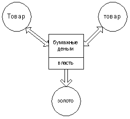 На валютном рынке возникает государство, имеющее свой стиль жизни, свои правила организации экономики, политической жизни, которое обладает следующими свойствами: с одной стороны, оно использует мировую валюту для расчетов с другими государствами и во внутреннем обращении, с другой – само производит эту валюту и продает другим государствам. Это — как с человеком, который обладает товаром – рабочая сила. Он на рынке выступает как продавец и продает себя за то, что сам же и производит — стоимость.