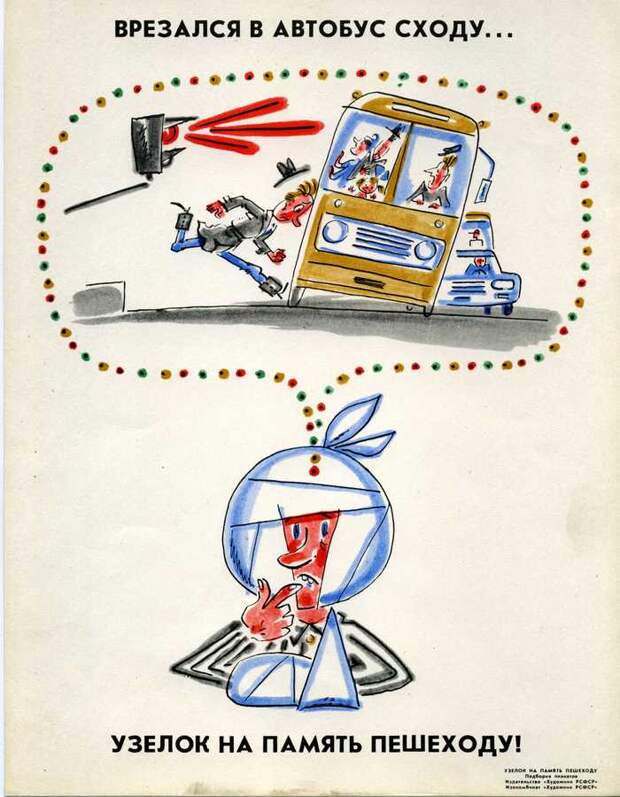 "Узелок на память пешеходу". Советские плакаты. Безопасность на дорогах