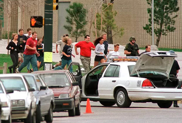 Утром 20-го апреля 1999 года Харрис и Клиболд приехали на машинах к своей школе и припарковались на чужих местах, с которых было хорошо видно вход и столовую. Они вооружились пистолетом пулемётом, дробовиками и двумя самодельным бомбами, которые они заложили в столовой за несколько минут до звонка. Бомбы должны были взорваться, когда в столовой будет полно людей. Но ни одна из бомб не сработала, так что убийцам всё пришлось делать своими руками.