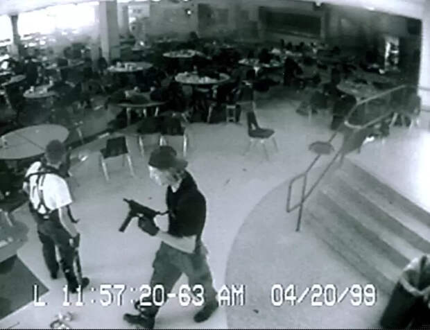 Харрис с Клиболдом забежали в школу, расстреливая всех уже там, но ранили в ногу только одну ученицу, которая сама выбралась из школы и смертельно ранили учителя физкультуры. Через четыре минуты ходьбы по коридорам Эрик и Дилан зашли в библиотеку, где всё ещё прятались под столами школьники.